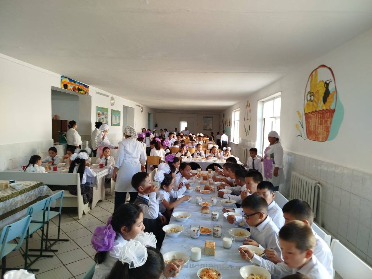 Келісім-шарт бойынша 5-11 сынып аз қамтылған отбасы балаларынан 6 оқушы, 1-4 бастауыш сыныптарынан түгел 197 оқушылары білім қоры есебінен бір мезгіл ыстық тамақпен тамақтандырады. Асханаға касса аппараты қойылған, e-ashana caйтына барлық оқушы тіркелген, күнделікті оқушылар өзінің карталарымен аппаратқа тіркеліп тамақ ішеді. Даярланған ас сапасы жақсы, СанПИН талаптарына сай. Ас мәзірі перспективалық мәзірмен сәйкес, бағасы келісім –шартта көрсетілген бағадан аспайды. Тамақтану сапасы, салмағы мен мөлшері талапқа сай. Күнделікті даярланған тағамдардың сапалылығы тексеріліп, тәуліктік ас сақталып отырады. Асхананың тамағы мен жұмыс жағдайы ата-аналар мен оқушылардың көңілдерінен шығады, олардың тарапынан шағым түспеген.
