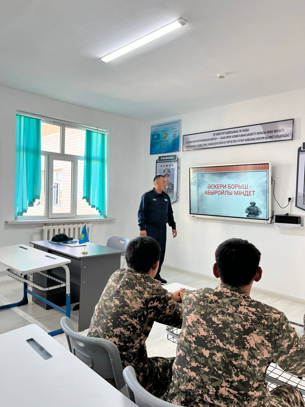 Сабақ барысында оқушыларға әскерге шақырудың жаңартылған тәртібі мен жаңа заңдағы өзгерістер жан-жақты түсіндірілді.