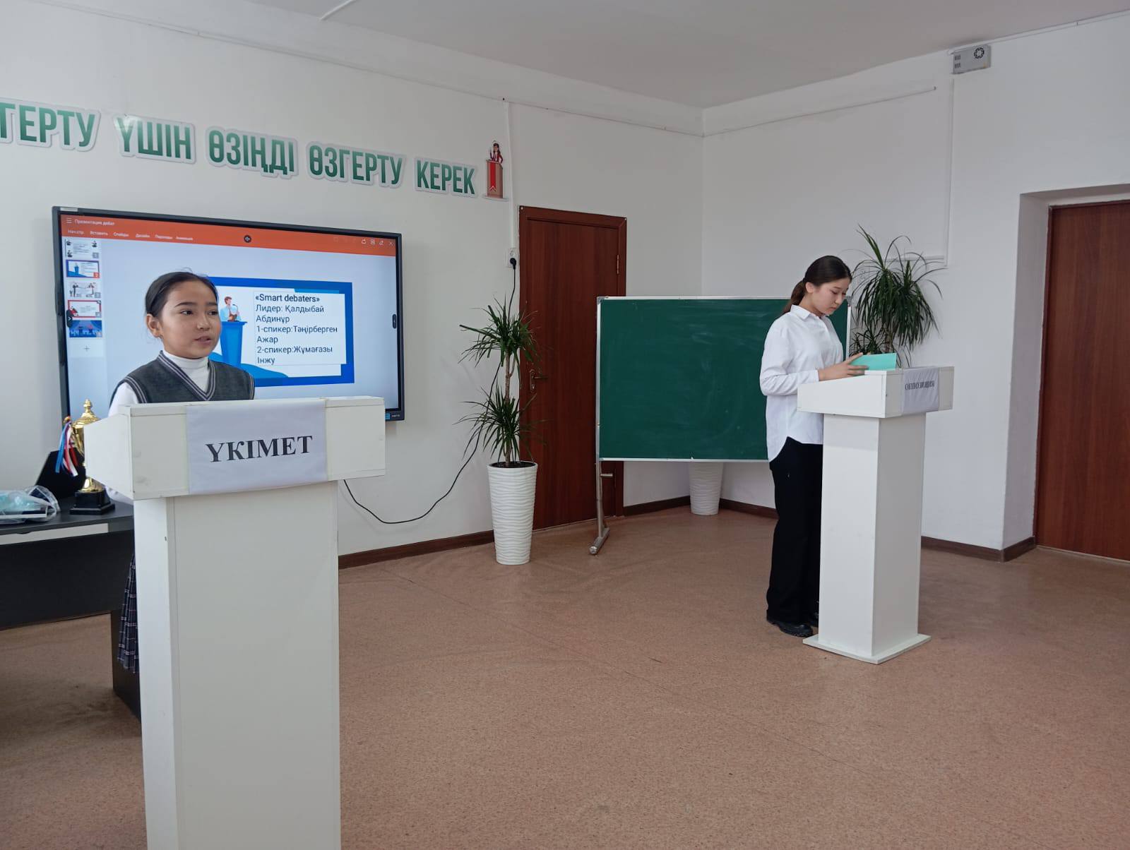 Дебат барысында оқушылар *«Бұл палата мектеп формасын сақтамаған оқушыға шара қолдану дұрыс деп есептейді»* деген қарар аясында өз көзқарастарын қорғап, дәлелді пікір білдірді.
