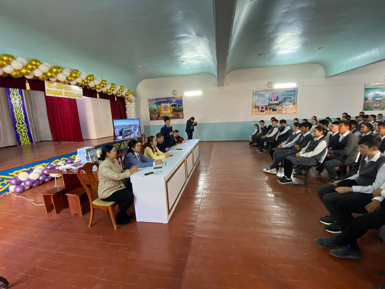 Отырар ауданына қарасты "Ш.Уәлиханов атындағы жалпы білім беретін мектеп"КММ де "Гендерлік зорлық-зомбылыққа қарсы 16 күн: белсенді әрекет» акциясы аясында 27.11.2025 жылы Отырар аудандық полиция бөлімі КҚБ-ның УПИ поиция лейтенанты А.Қыстаубай, Жастар ресурстық орталығының психолог маманы Әдемі Маханбетжан, отбасын қолдау орталығы: психолог маманы Өсербай Мөлдір, АПБ, ҚҚБ, ӘЗЗҚТ- инспекторы полиция лейтенанты Сейілбек Нұрдәулет, АПБ ОТЗЗҚКТИ полиция лейтенанты М.А. Зияев, АПБ-нің ҚҚБ ЮПТ-ның полиция капитаны Б.Қапалбайұлының қатысуымен құқықбұзушылық, тұрмыстық зорлық-зомбылық, буллинг, кибербуллинг, оқушылар арасындағы әлімжеттіктің және ерте жүктіліктің алдын алу бойынша жиын болып өтті.